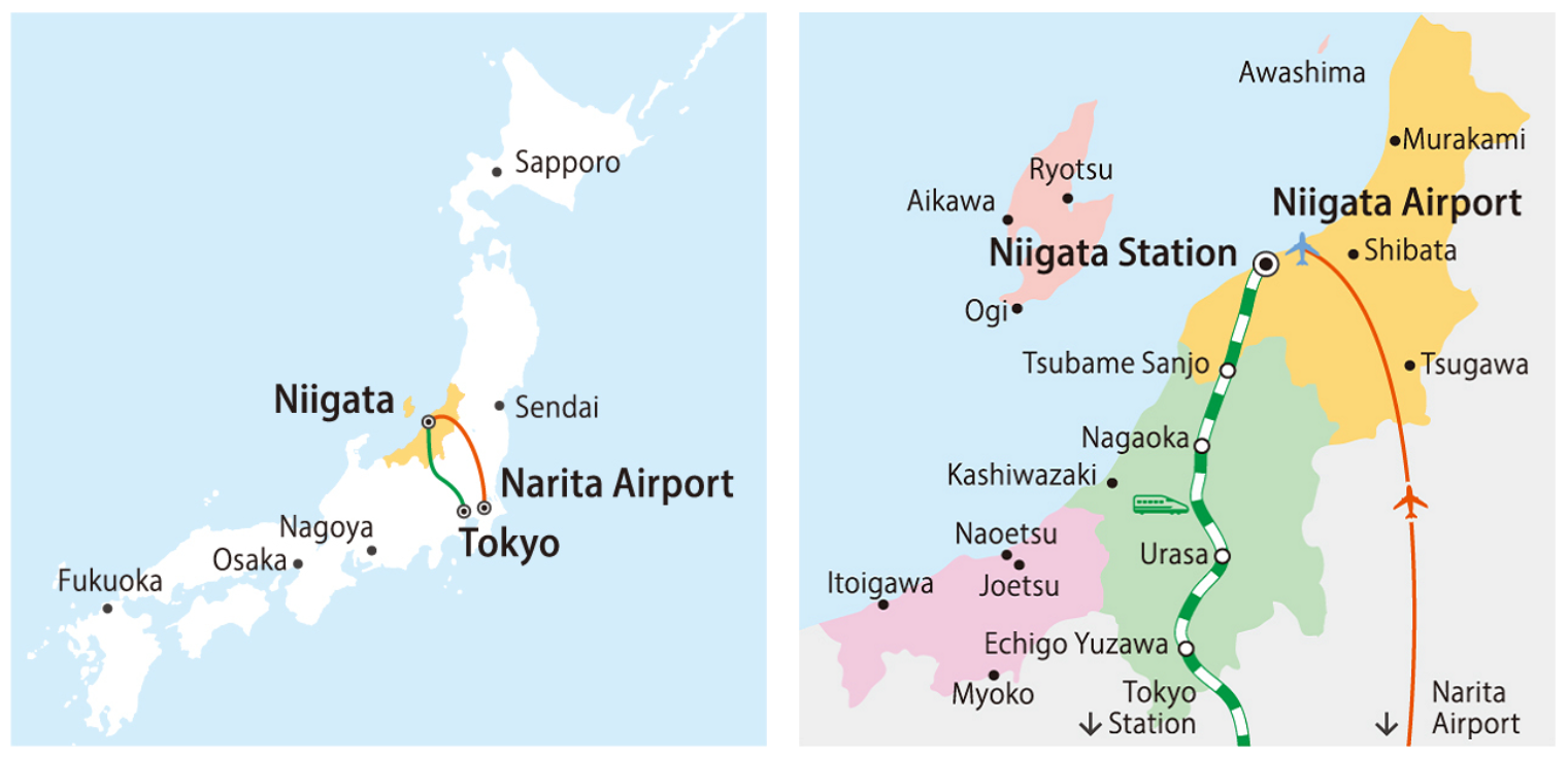 - By Tokaido & Joetsu Shinkansen (bullet train): About four hours